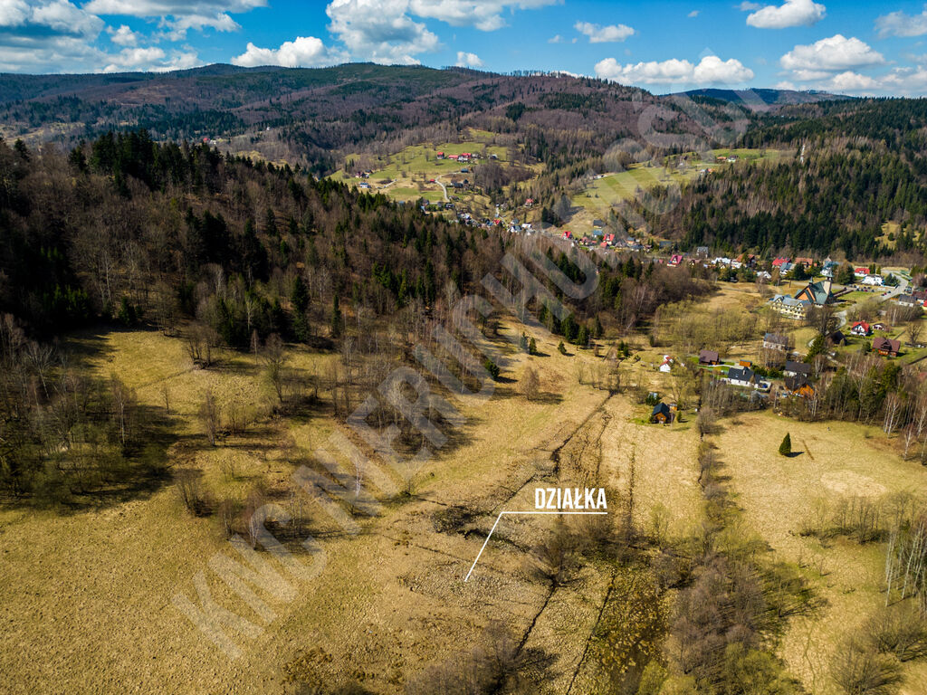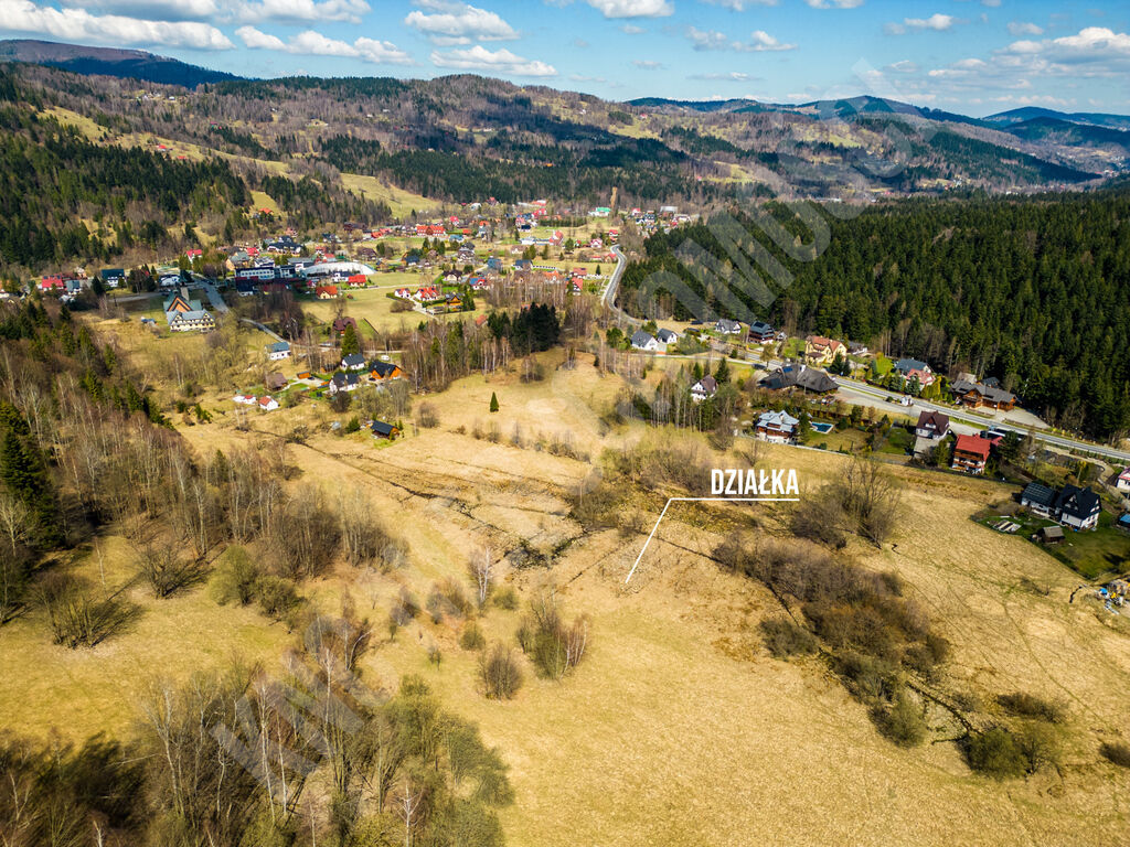 narciarski Mosorny Groń. Teren działki jest lekko nachylony,